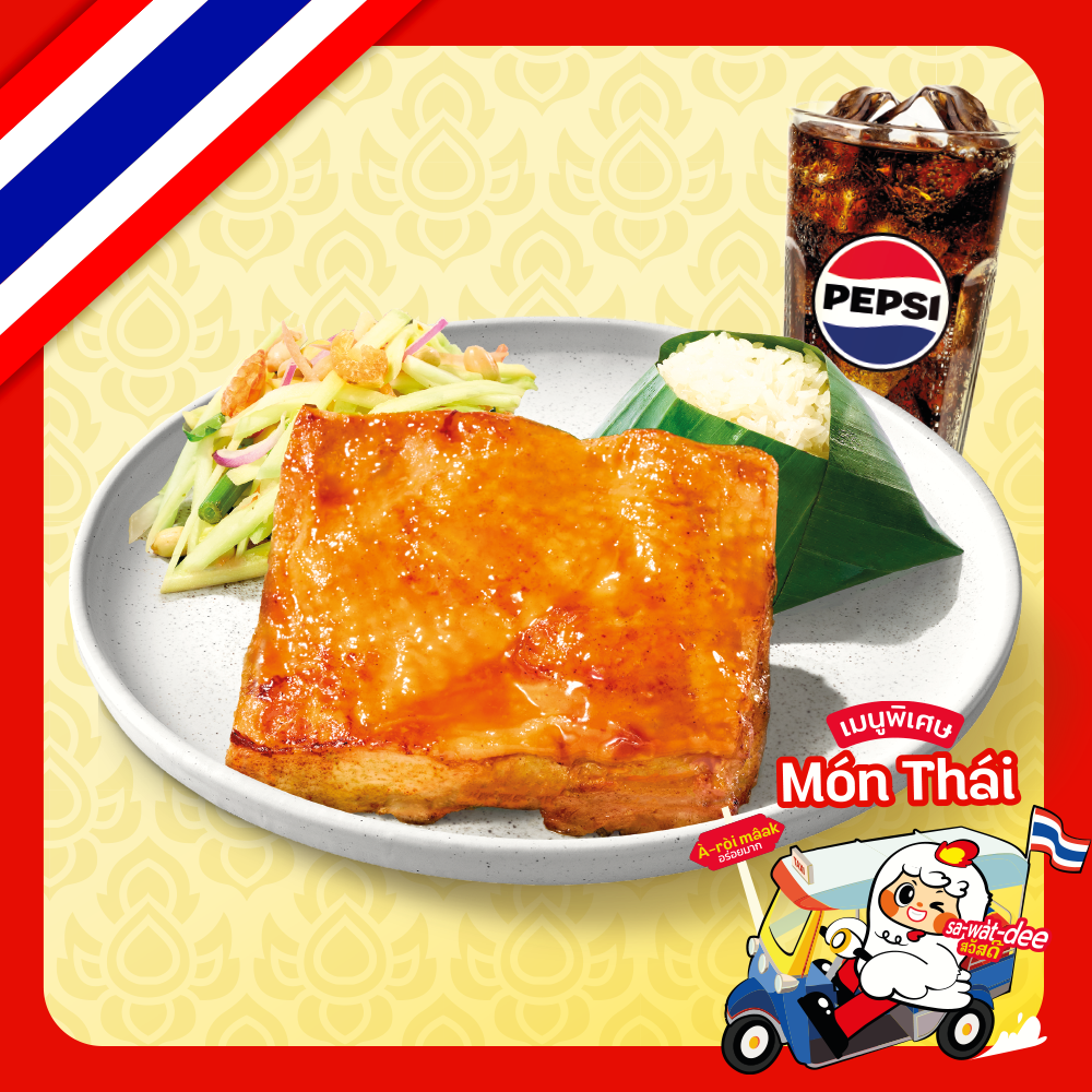 Thai sticky rice with grilled boneless chicken & Mango salad somtam sauce