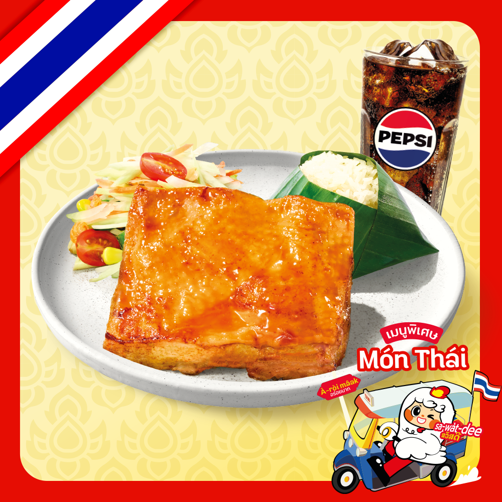 Thai sticky rice with grilled boneless chicken & Papaya salad somtam sauce